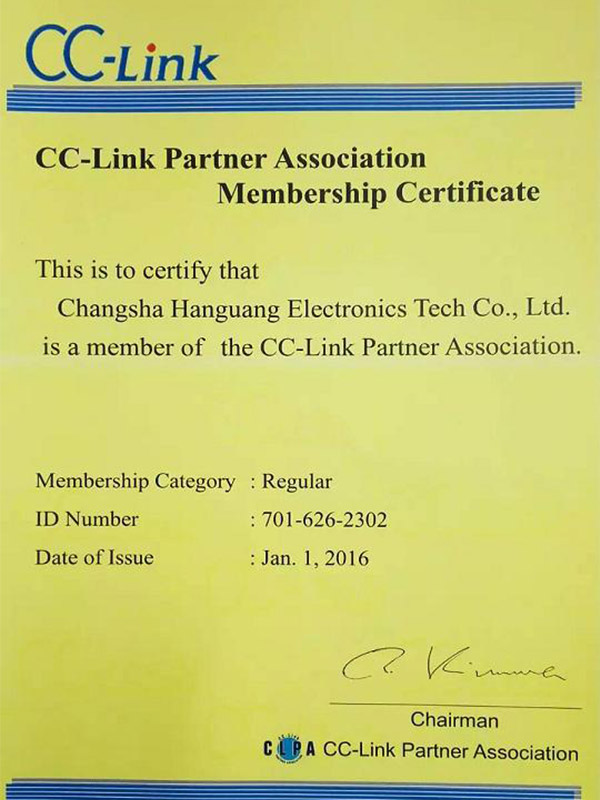 晗光公司成為CC-Link(控制與通信網(wǎng)絡)協(xié)會成員
